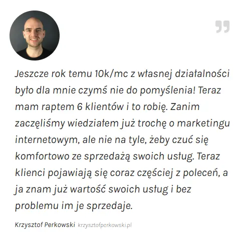 W kursach online często brakuje bezpośredniego kontaktu z instruktorem. Tym wszystkim ekspertom zależy tylko na tym, żeby sprzedać Ci produkt i mają gdzieś czy sobie poradzisz. Nie oferują wsparcie we wdrożeniu wiedzy.